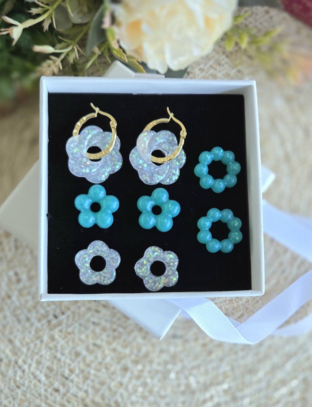 Box boucles d'oreilles pampilles interchangeables en résine époxy - fait mains