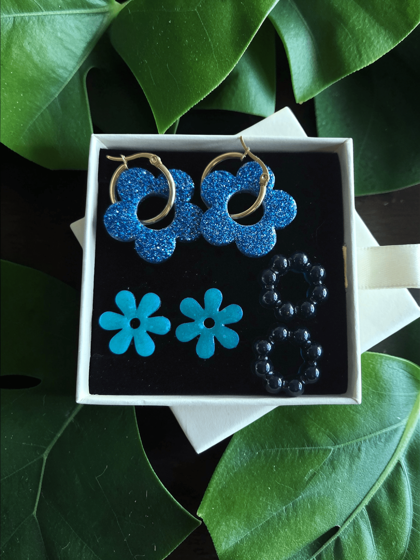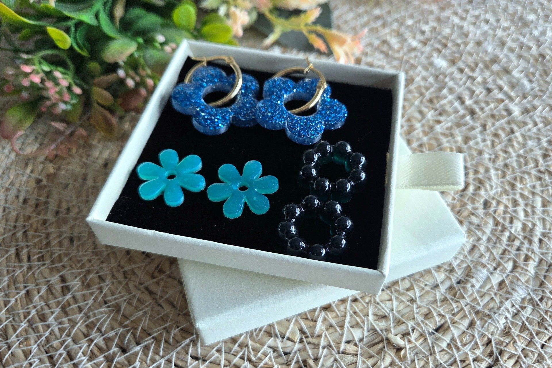 Box boucles d'oreilles pampilles interchangeables en résine époxy - fait mains