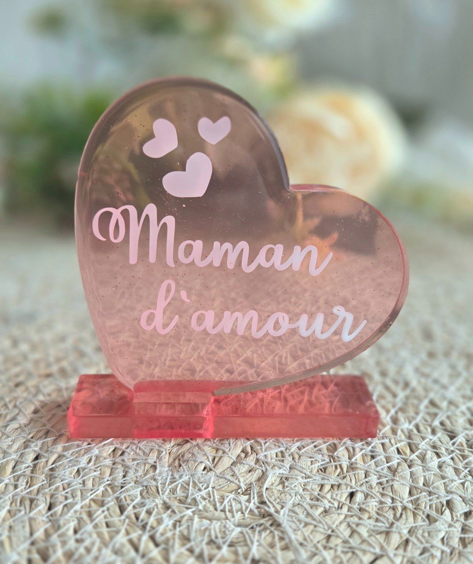Cœur en résine avec socle et message personnalisé – Décoration artisanale