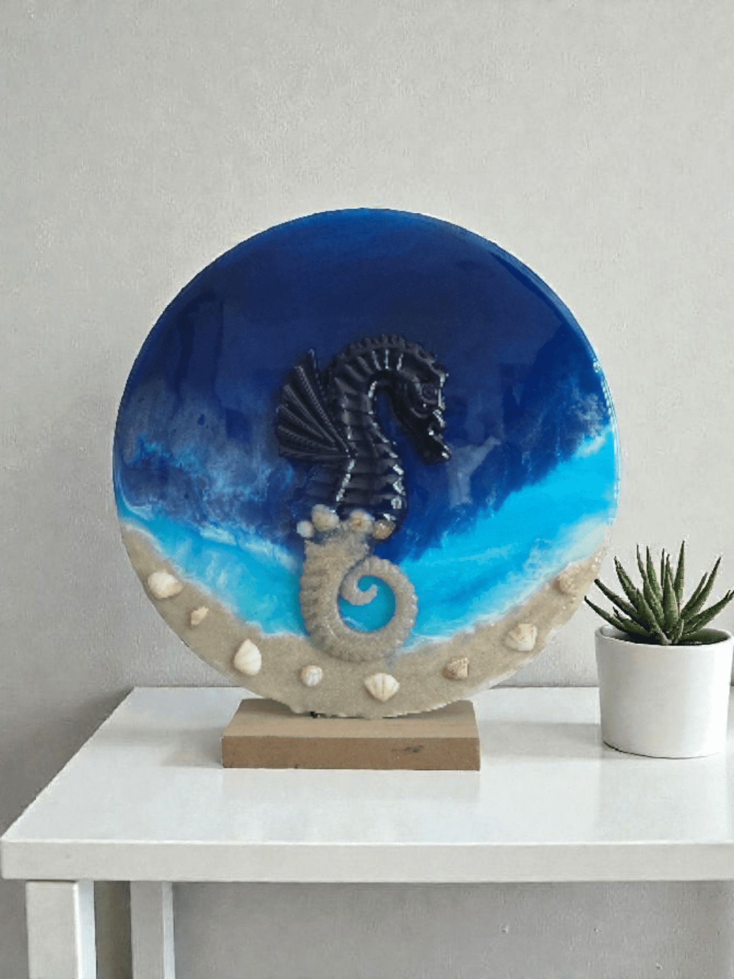 Sublime Décoration Murale « Hippocampe Océanique » – Pièce Artisanale en Résine