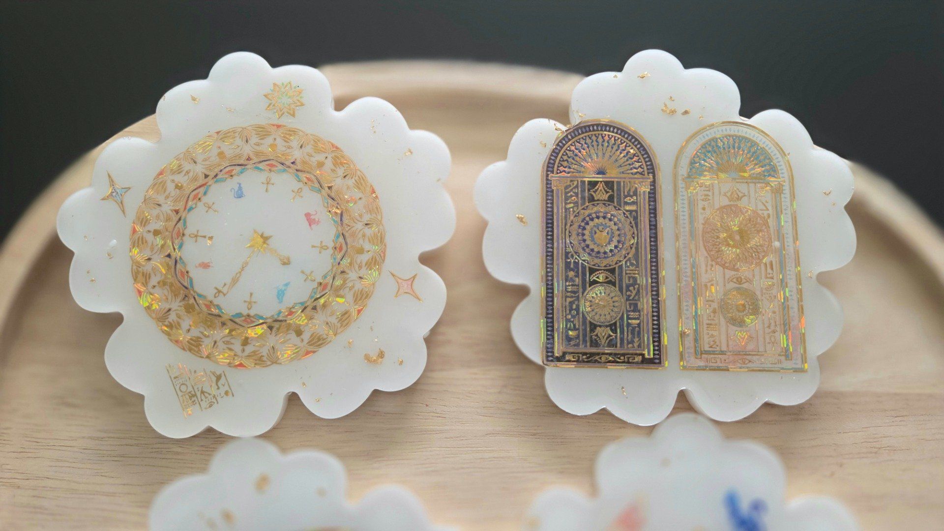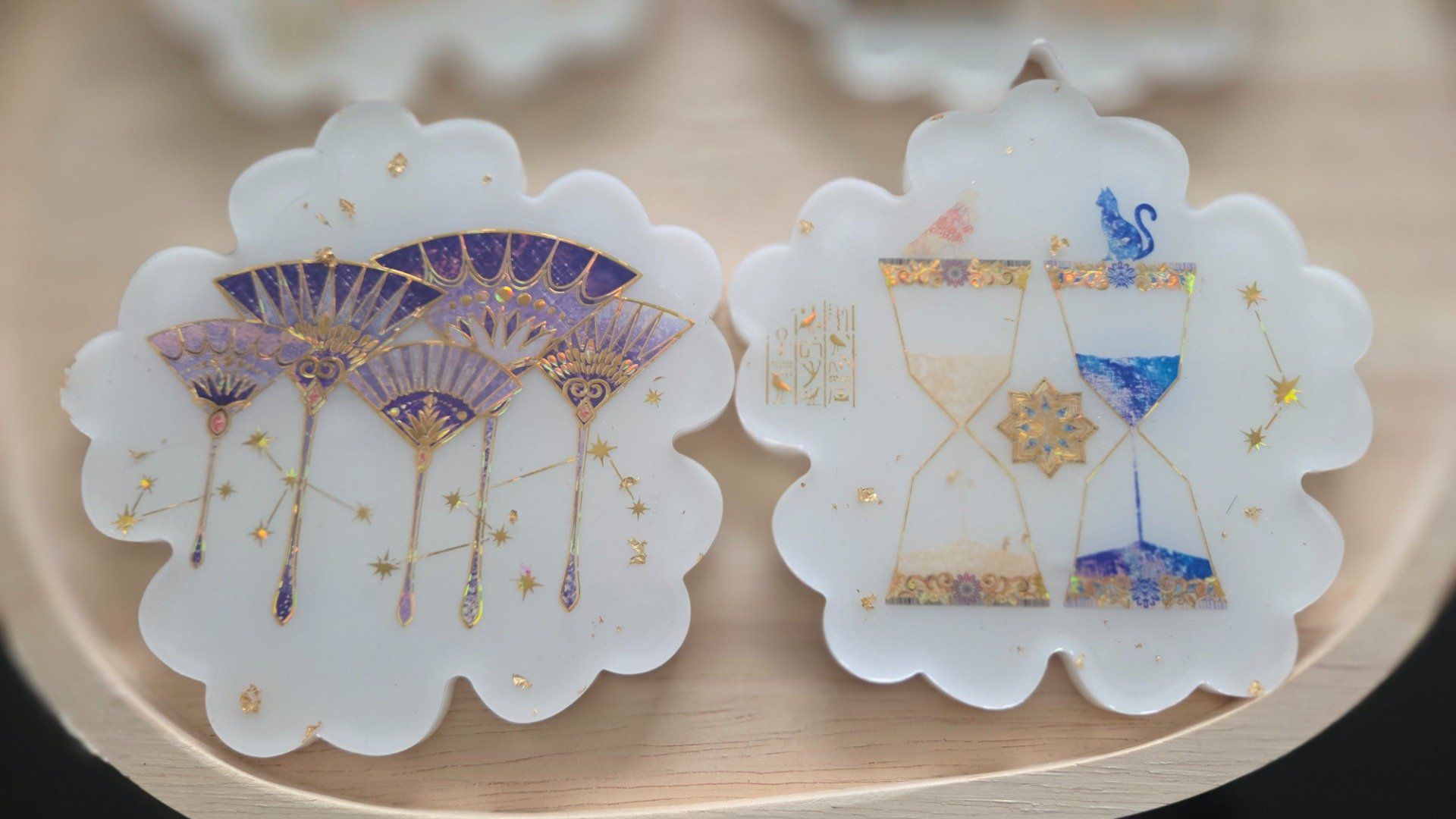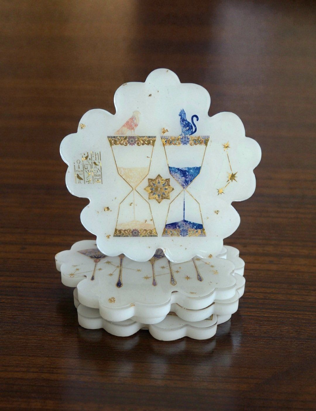 Découvrez notre ensemble de 4 dessous de verres au thème captivant de l'Égypte, une véritable invitation au voyage à travers le temps et les mystères de l'Antiquité. Chaque dessous de verre est soigneusement fabriqué à la main en résine, garantissant une qualité et un design uniques qui sauront embellir votre table.