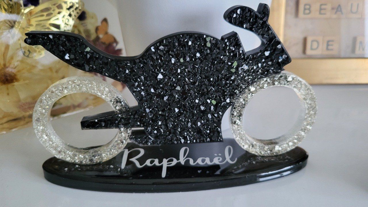 Moto sur socle "effet diamant" personnalisable