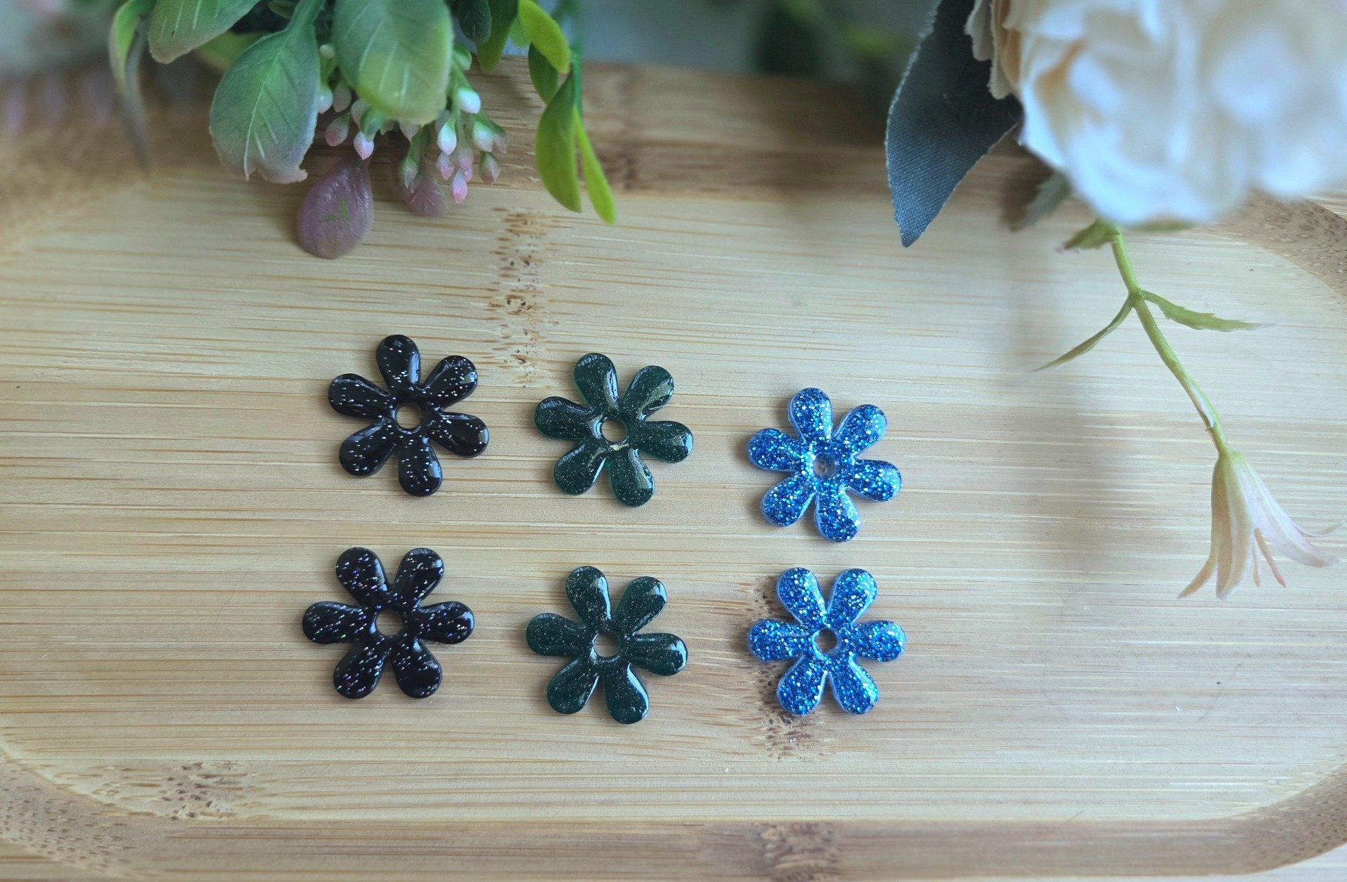 Pampilles Marguerite en résine époxy – pampilles artisanales légères pour boucles d’oreilles